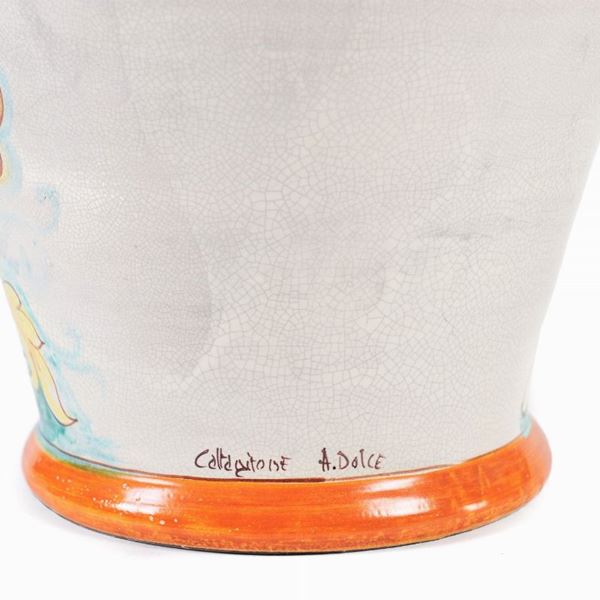 Polychrome ceramic vase, Caltagirone, second half of the 20th century