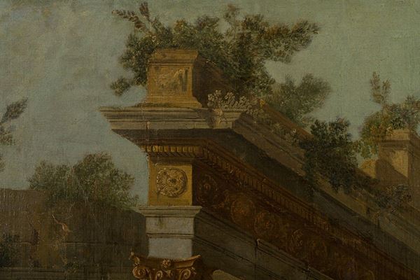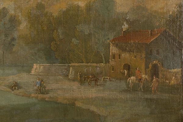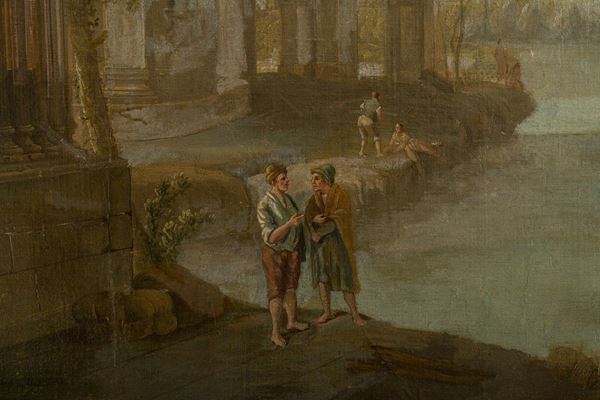 Paesaggio fluviale con capriccio architettonico, Scuola napoletana, metà XVII secolo