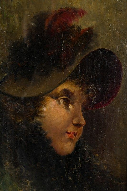 Ritratto di donna con cappello, Scuola napoletana, fine XIX secolo