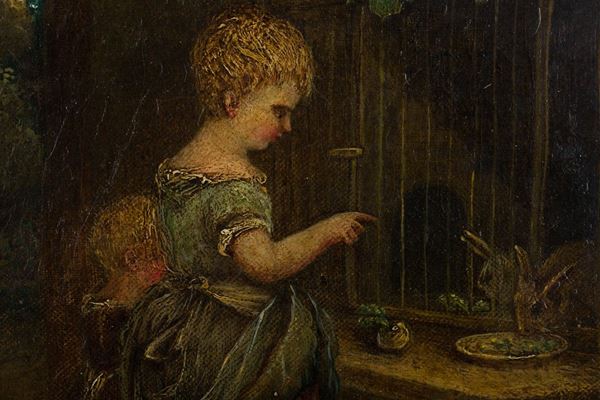 Bimbe che osservano conigli, Scuola francese, inizi XX secolo