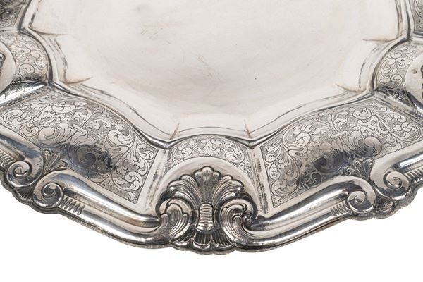 finemente cesellato e sbalzato a volute; peso: 1990 gr.