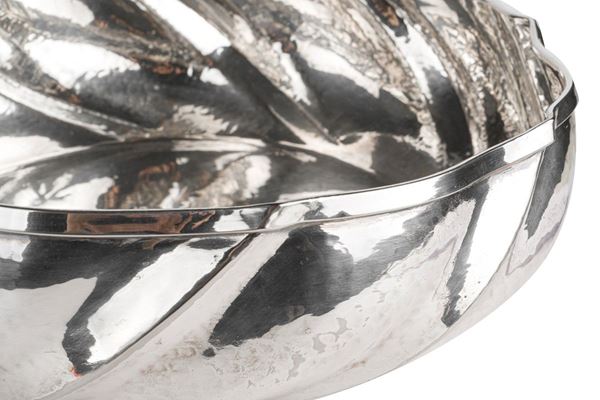 Centrotavola tondo in metallo argentato, Italia, seconda metà XX secolo