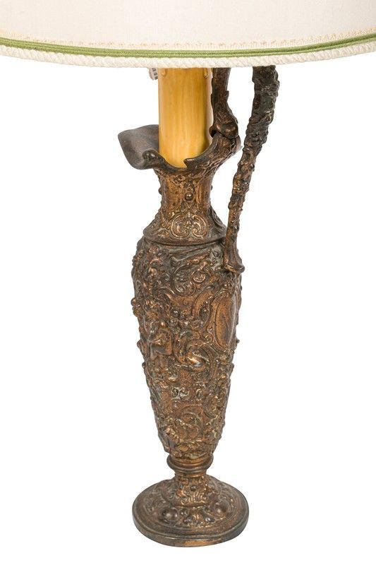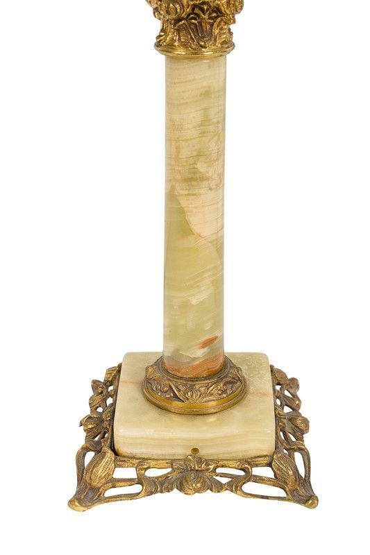 complete di paralumi, una con supporto in metallo sbalzato e una in onice