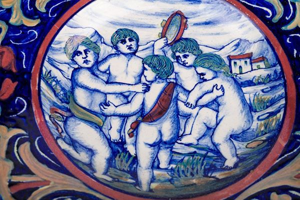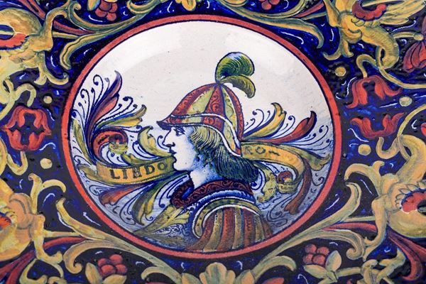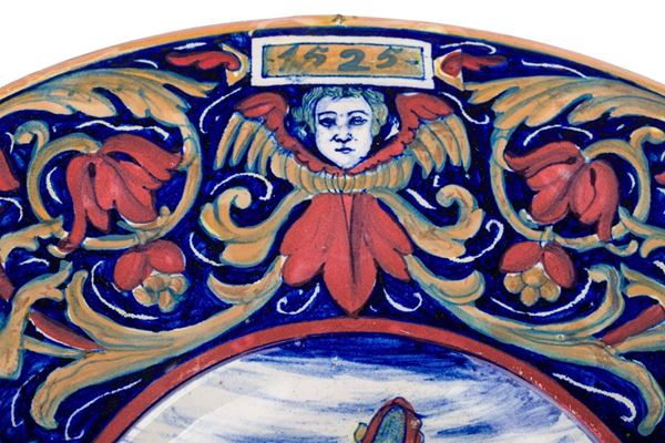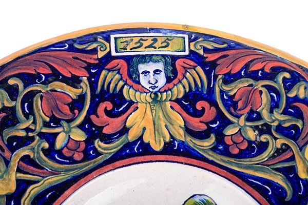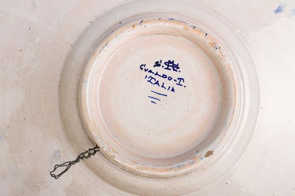Coppia di piatti in ceramica policroma, Manifattura di Gualdo Tadino, anni '40