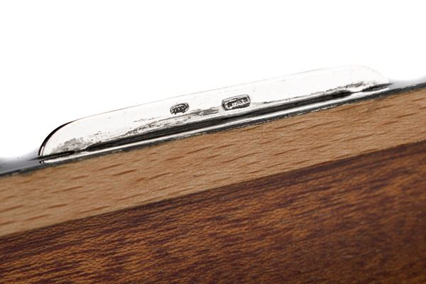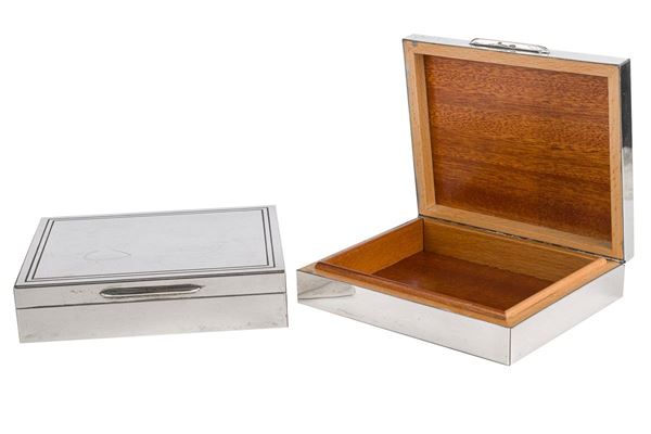 Coppia di scatole in argento 800 e legno, Italia, seconda metà XX secolo