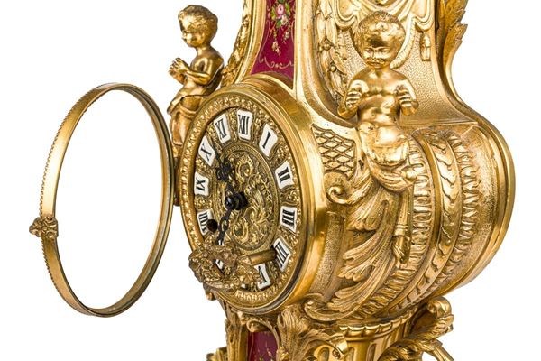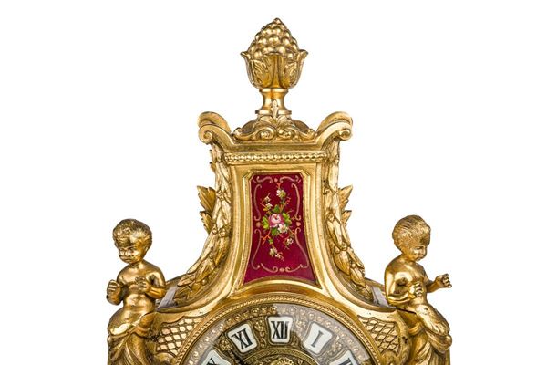Orologio d'appoggio in bronzo dorato, Manifattura brianza, seconda metà XX secolo