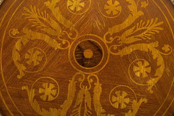 Tavolo intarsiato, Manifattura brianza, seconda metà XX secolo