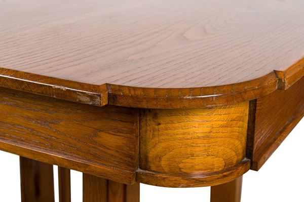 Tavolo quadrato in legno di rovere, Manifattura italiana, inizi XX secolo
