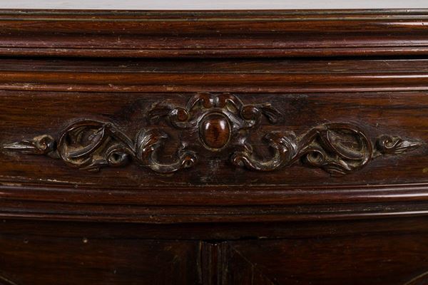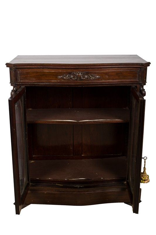 con un cassetto e due sportelli con ovali in vetro, piccoli difetti