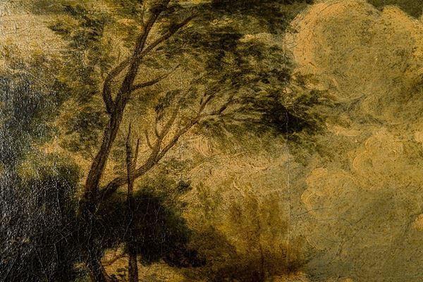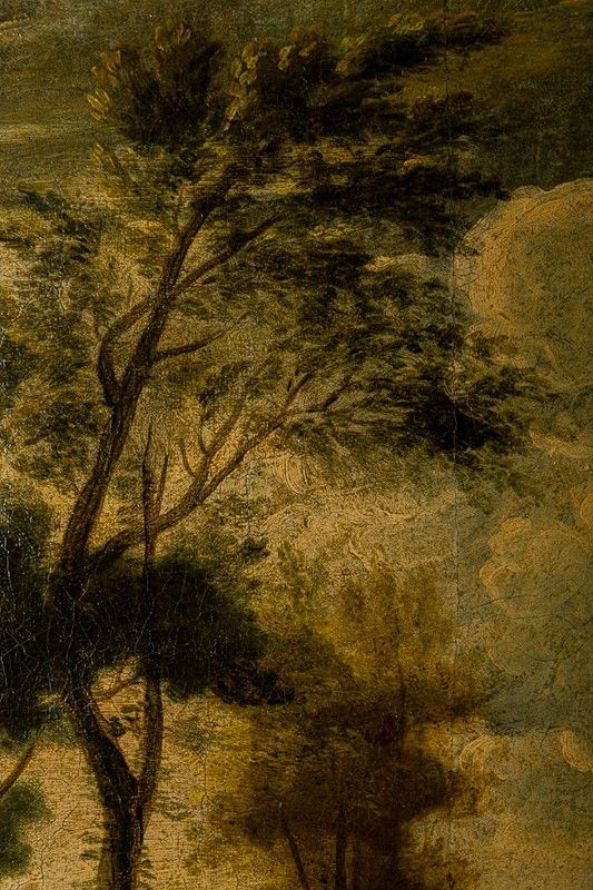 Il dipinto si presenta in ottimo stato di conservazione (a parte un cretto verticale al centro del dipinto, poco visbile). Completo di bella cornice coeva, in legno dorato, ed in ottime condizioni.