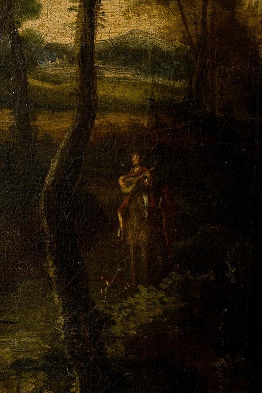 Il quadro, con la sua quiete bucolica, presenta evidenti rapporti con opere coeve di Francesco Zuccarelli (1702-1788) e Giuseppe Zais (1709-1788); il paesaggio è vaporoso e lucente, delineato una leggerezza eccezionale. I pastori arcaicizzanti del dipinto appaiono chiaramente ispirati alle figure graziose e delicate che popolano gli idilli pastorali di Nicolaes Berchem e di altri importanti artisti di genere, ben conosciuti dai soggionri romani che ogni pittore dell'epoca doveva necessariamente compiere e all'interesse sempre vivo per la scuola dei Bamboccianti.