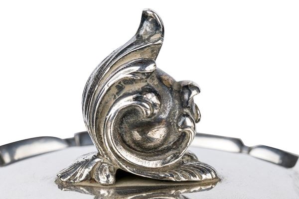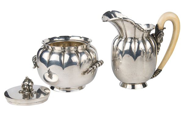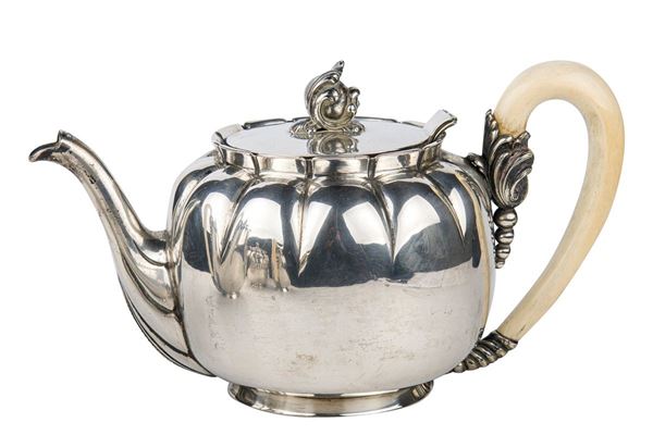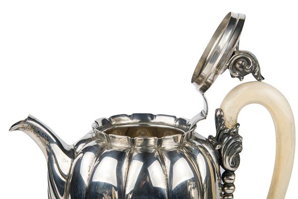 con manici in avorio, composto da teiera, caffettiera, lattiera e zuccheriera, peso: 2990 gr.