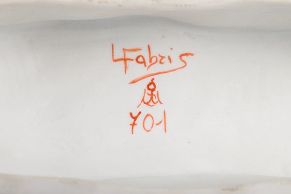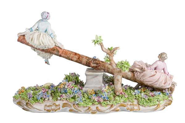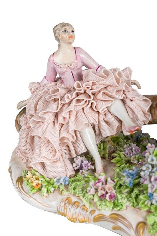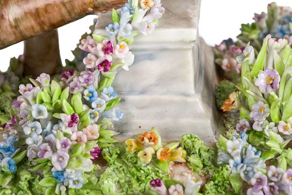 gruppo in porcellana policroma multiplo, firmato e datato, rottura e mancanza