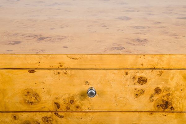 in legno di betulla, a un cassetto, seduta della sedia in pelle, piccoli difetti