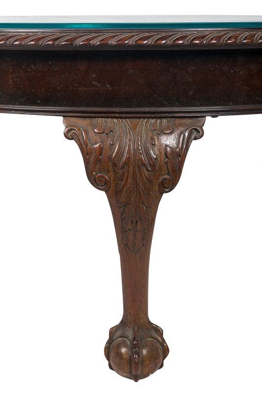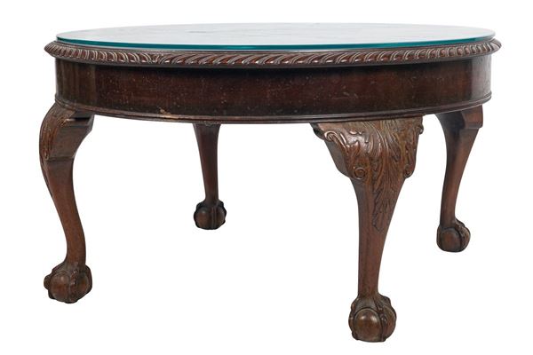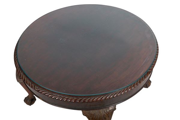 in legno di noce con quattro gambe arcuate terminanti con piede di rapace che stringe una sfera