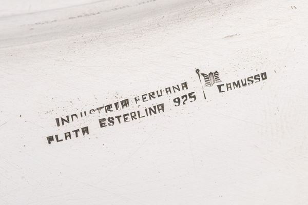 Vassoio tondo in argento 925 Camusso, manifattura peruviana, XX secolo