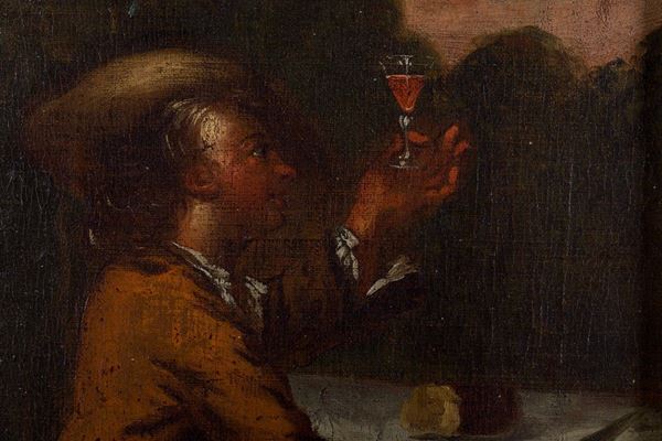 "Il bevitore" e "Scena galante", in cornici dorate
