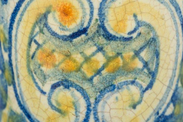 in maiolica policroma, il pezzo era parte della collezione Barresi, difetti