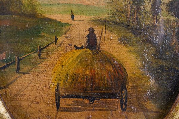 dipinti raffiguranti "Carretto con fieno" e "Ritorno in campagna", in cornici
