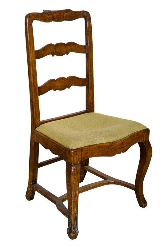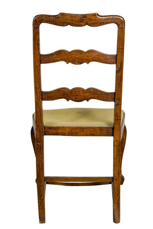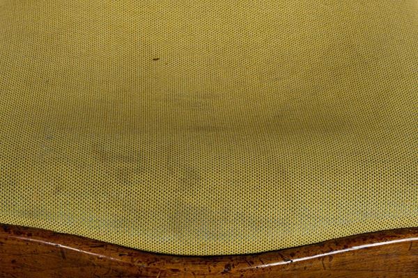 in legno di noce, gambe arcuate, macchie sulle sedute, difetti