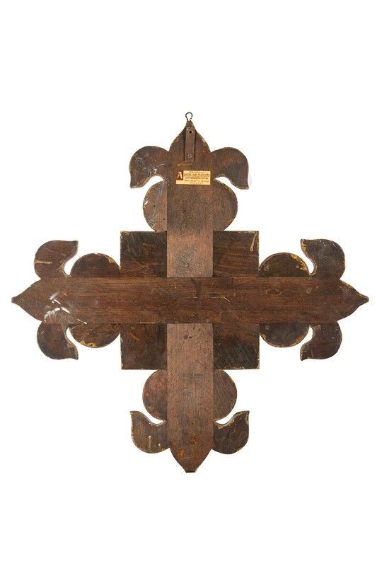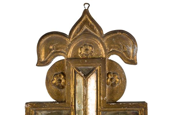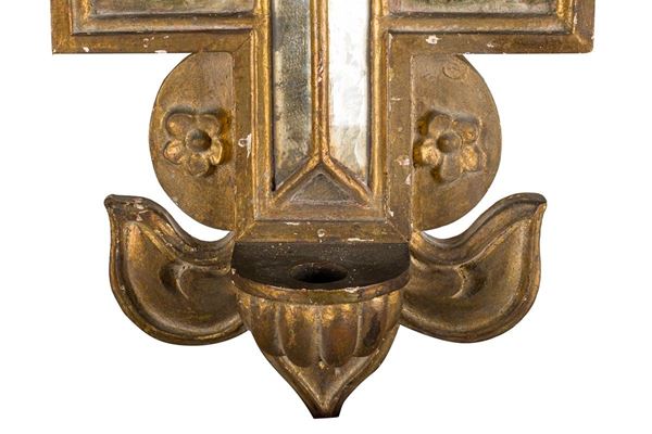 scolpita con motivi floreali, con vetri a specchio e reggicandela, lievi difetti