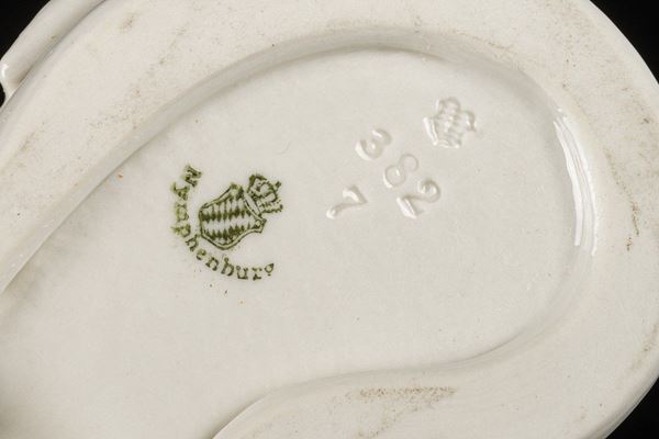 scultura in porcellana smaltata, marcata Nymphenberg alla base, numeri "382" e "7" impressi, mancanze e rotture