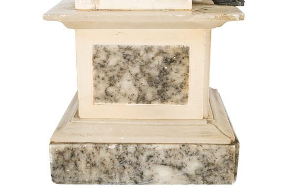scultura in bronzo, alabastro e marmo di Carrara grigio (rotture)