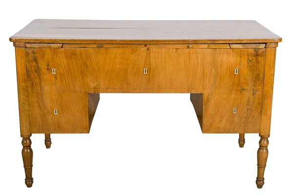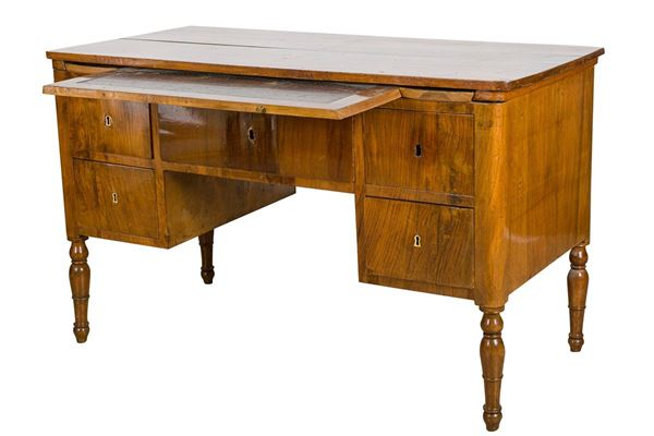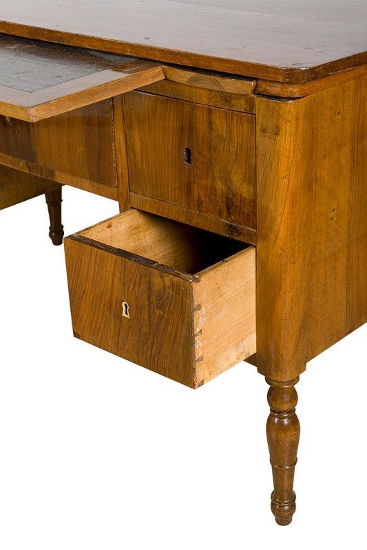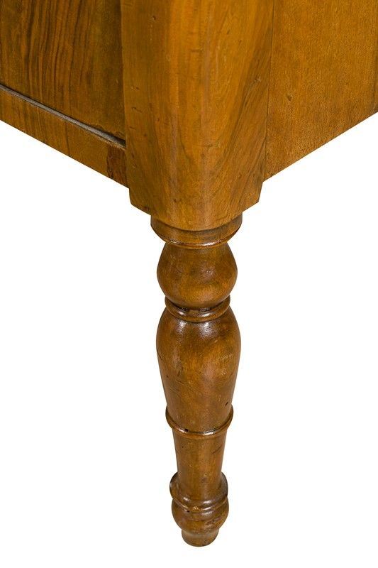lastronato in noce, a cinque cassetti e un tiretto, gambe tornite, difetti e mancanze