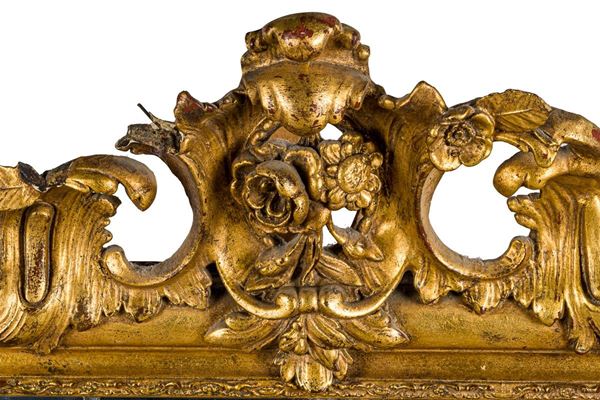 Specchiera in legno intagliato e dorato, manifattura francese, XIX secolo