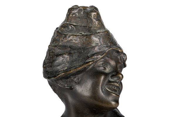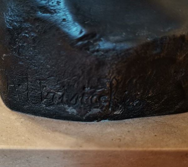 scultura in bronzo, con base in marmo botticino (lieve scheggiatura), firmato