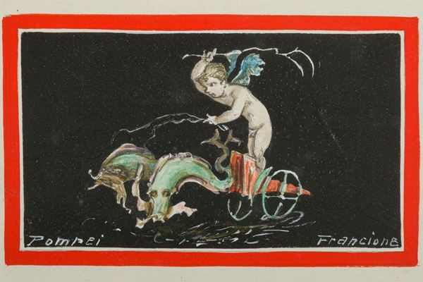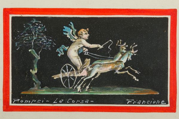di cui "Putto su una biga" e "La corsa", firmati, in cornici