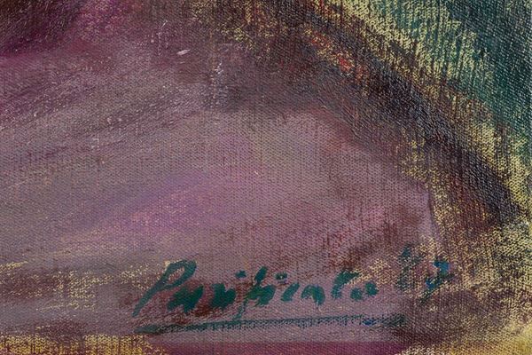 firmato in basso a destra, al retro: tre timbri di provenienza di cui due illeggibili (uno con firma) e uno della Galleria di Roma