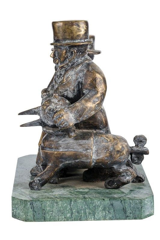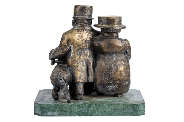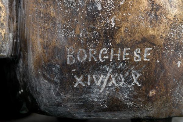 scultura in bronzo su base in marmo verde delle Alpi, firmato e numerato: Borghese, XIV/XXX