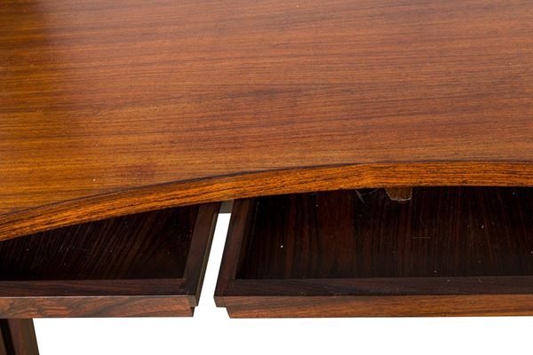 decalcomania del produttore. Doppia cassettiera, posta sul lato destro e cassetto centrale sottopiatto, difetti