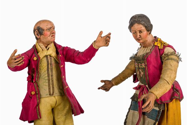 Lotto di due personaggi da presepe, manifattura napoletana, inizi XX secolo