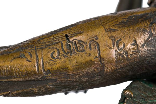 scultura in bronzo con base in pietra, firmato: Fontanella