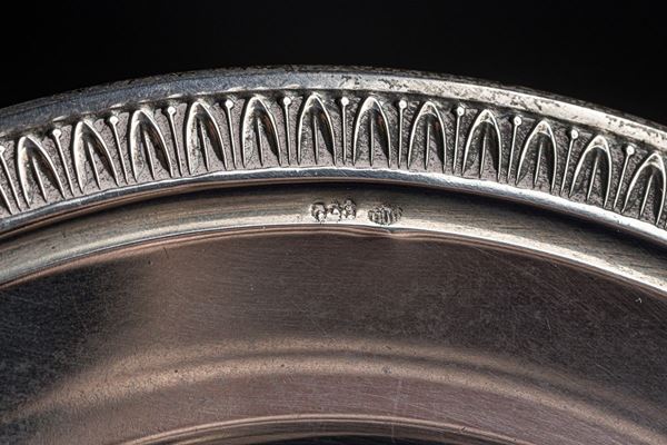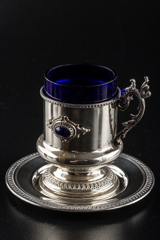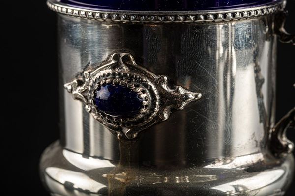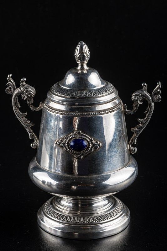 Bordi a palmette, manici a cigno, applicazioni in pietra dura blu, gr. 2256