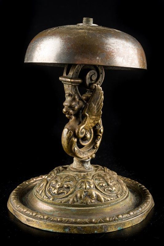 in metallo, la campana presenta decori sul piede con grifone e girali