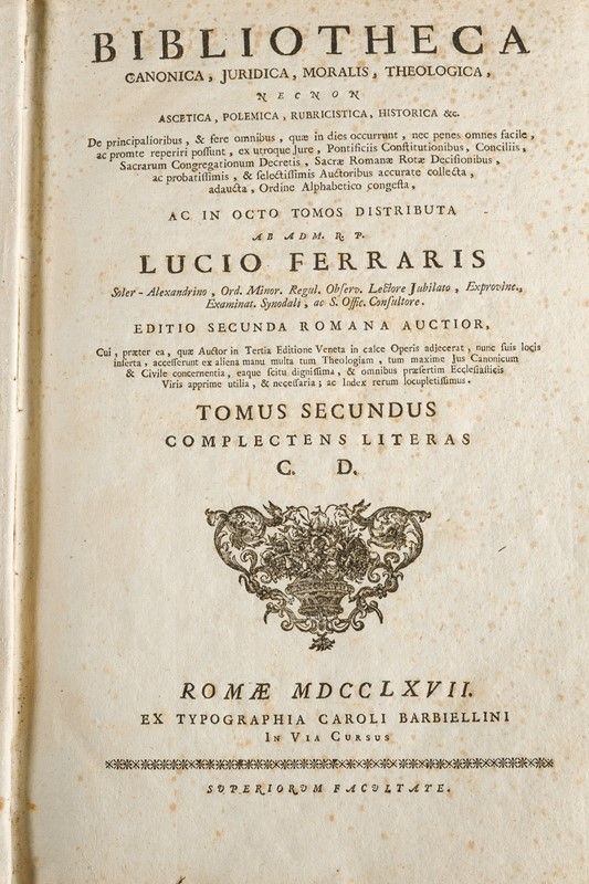 Bibliotheca canonica, juridica, moralis, theologica, Lucio Ferraris, 1767