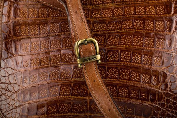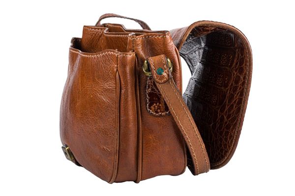 in pelle lavorata coccodrillata, doppia tasca e taschina interna