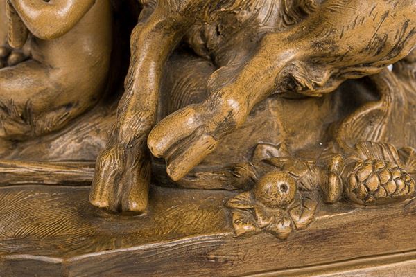 Fauna seduta con ai lati due piccoli satiri, inizi XIX secolo