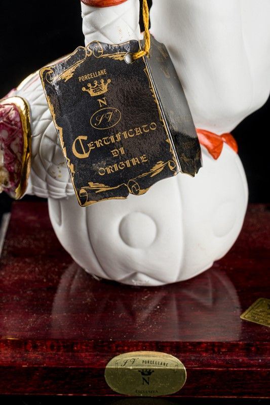 in porcellana e oro zecchino, marchiato "N" coronata, firmato Vittorio Sabadin, con base in legno e certificato di garanzia