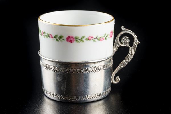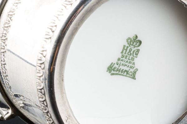 Coppia di tazzine in porcellana Bavaria con sotto tazzine in argento 800