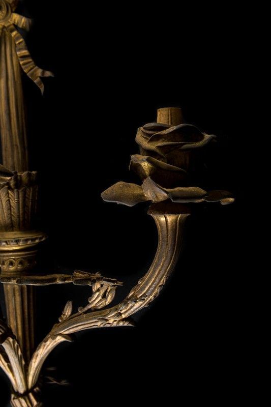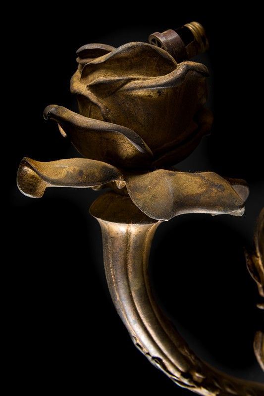 in bronzo dorato, con tre lumi a forma di rosa, difetti