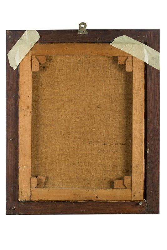 firmato e datato al verso. Il dipinto, una buona copia ottocentesca da Guido Reni, presenta lacune, macchie d'umidità e due zone con piccoli graffi. In cornice