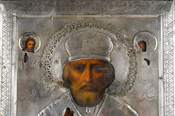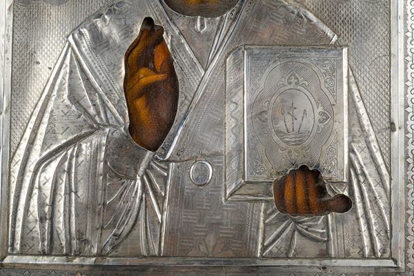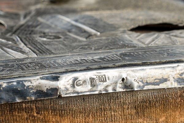 con lamina d'argento lavorata e cesellata a mano, provenienza dalla città di Tula