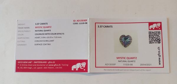 provenienza: Brasile - 3.37 carati - colore: incolore, con riflessi - forma: a cuore - dimensioni: 9.94 x 10.05 x 7.03 mm - taglio: concavo & brillante - con certificato GFCO (Laboratorio svizzero) AD13030P
