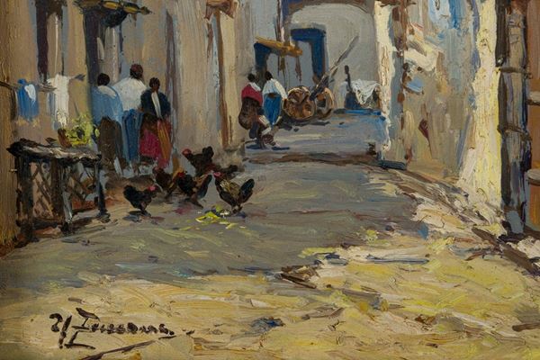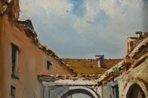 Scorcio di paese con arco, scuola napoletana, XX secolo