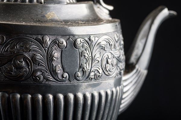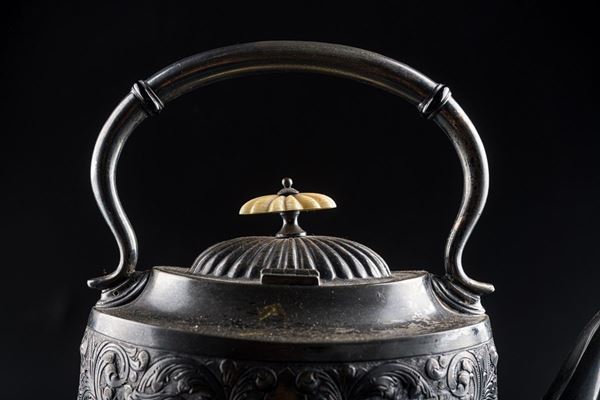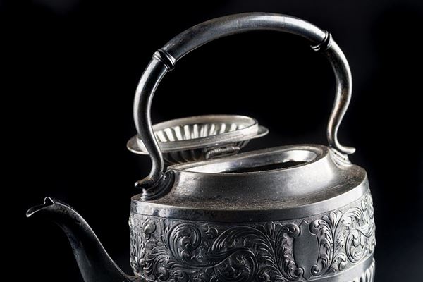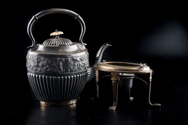 Teiera con fornelletto a spirito in Sheffield, Inghilterra, seconda metà XIX secolo