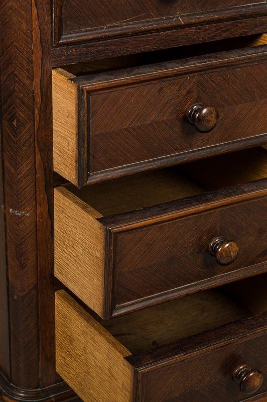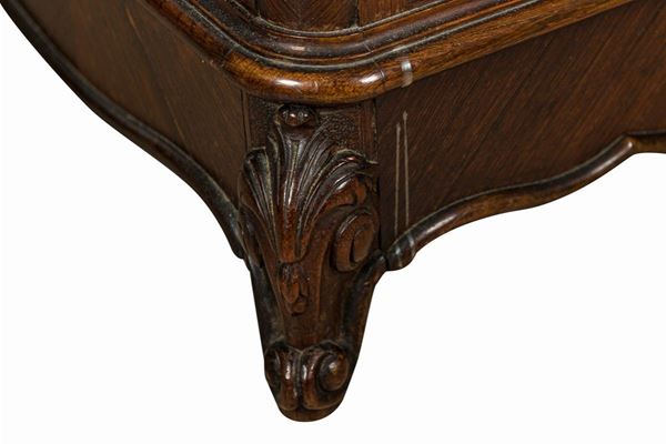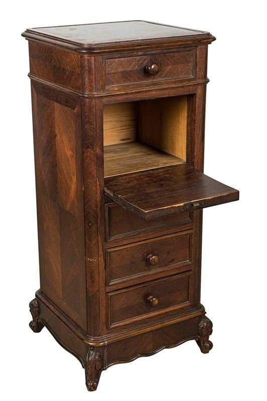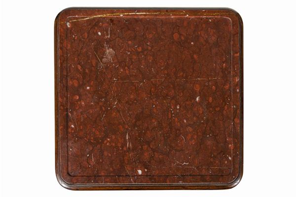 in mogano, con piano in marmo, quattro cassetti e calatoia